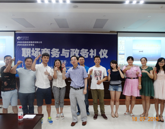 在禮儀培訓(xùn)中的游戲環(huán)節(jié)第8組成員獲獎(jiǎng)由公司馬董事長頒發(fā)獎(jiǎng)品